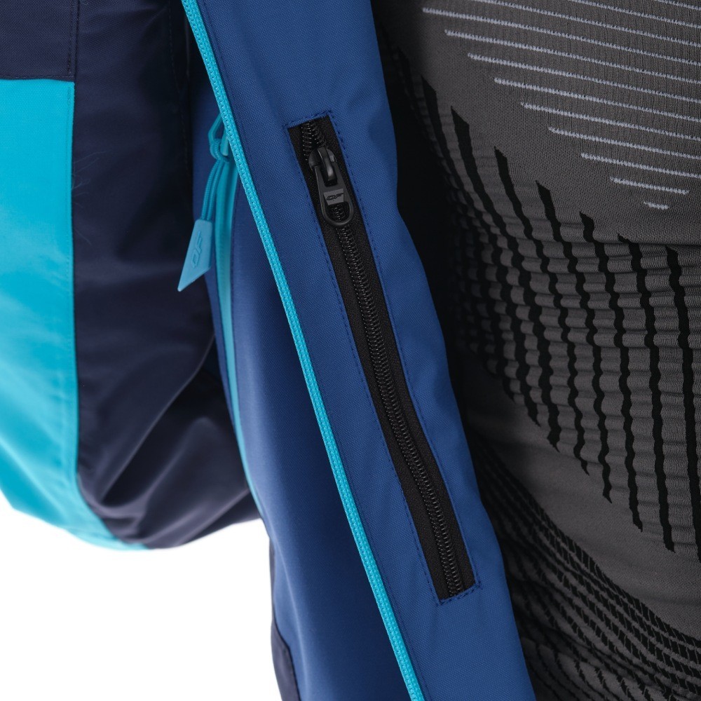 Семь карманов покрывают все потребности: присутствует карман для ски-пасс, теплые карманы для согревания рук, внутренний карман на молнии для телефона с пленкой touch screen.