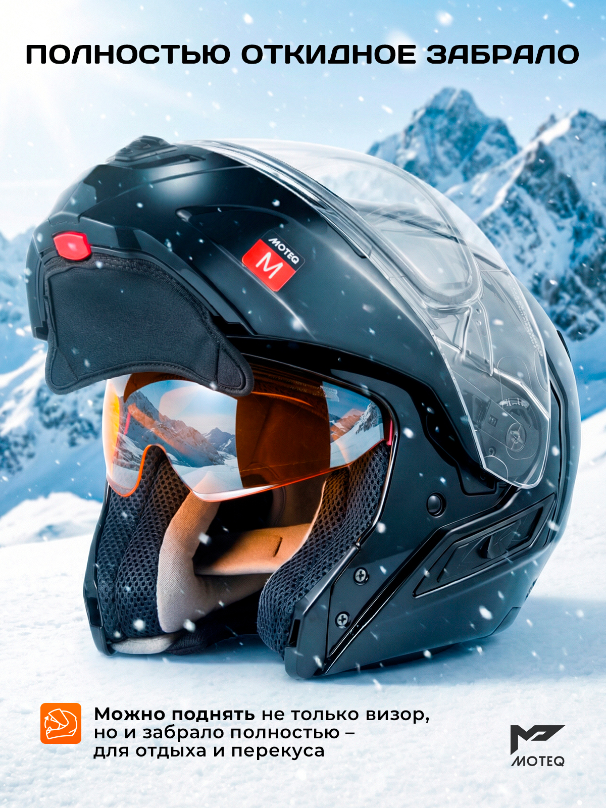 Новый MOTEQ SubZero - это легкий снегоходный шлем модуляр с двойным стеклом, встроенным солнцезащитным визором и улучшенной видимостью!