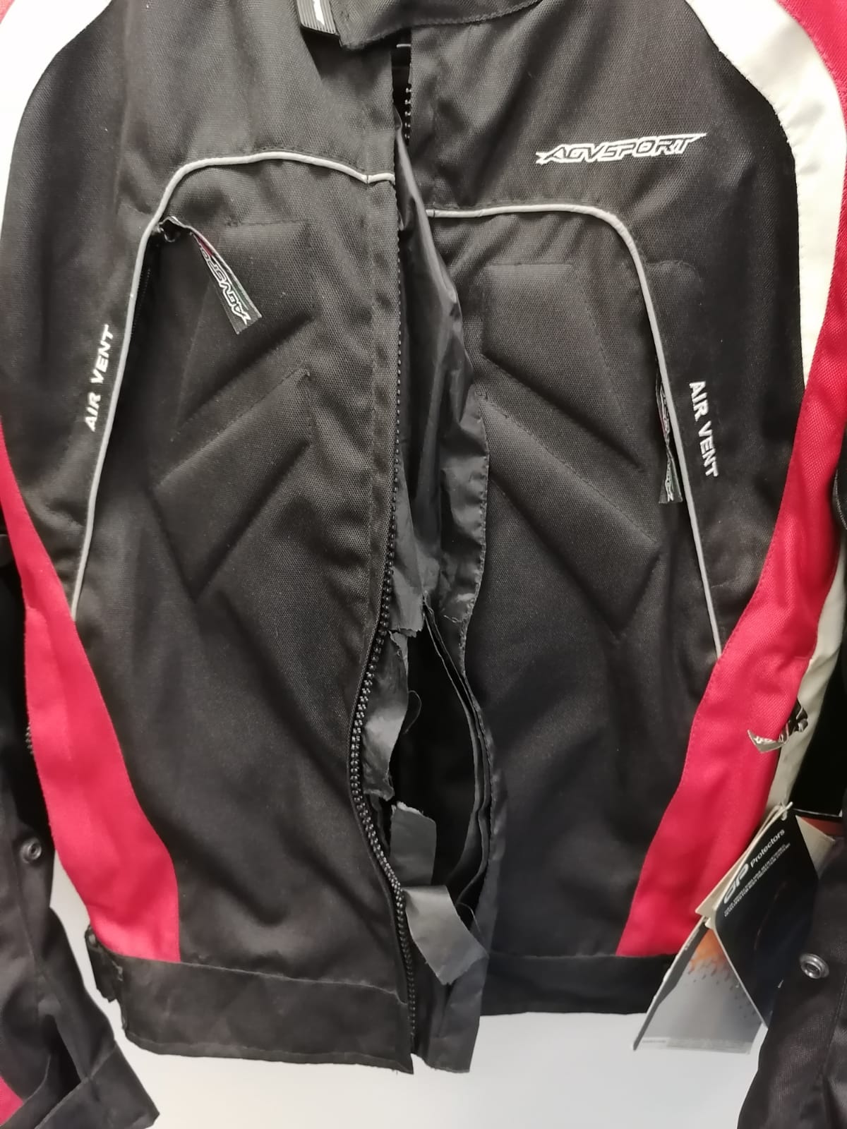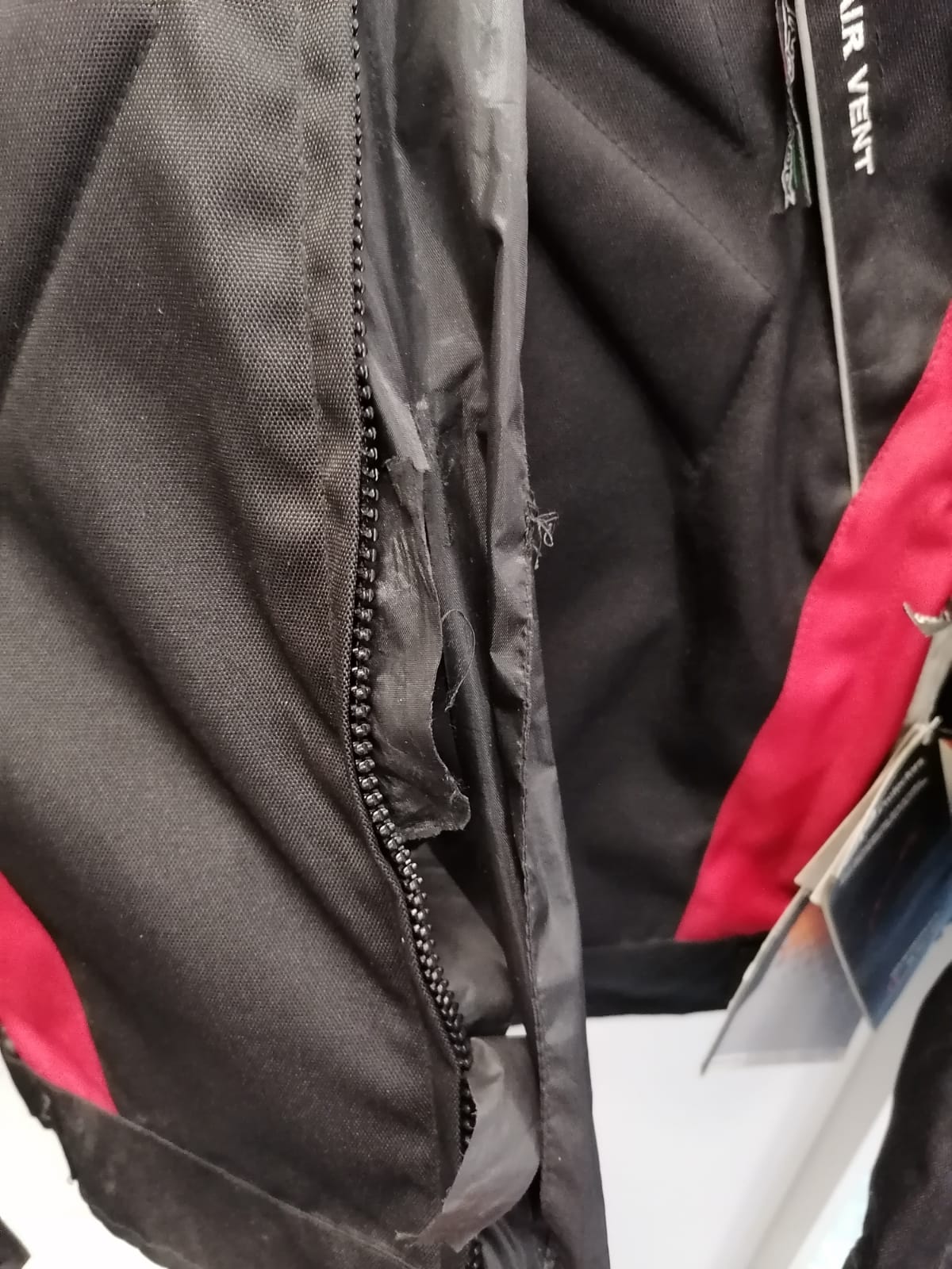На куртке дефект в виде порванного ветрозащитного клапана передней молнии