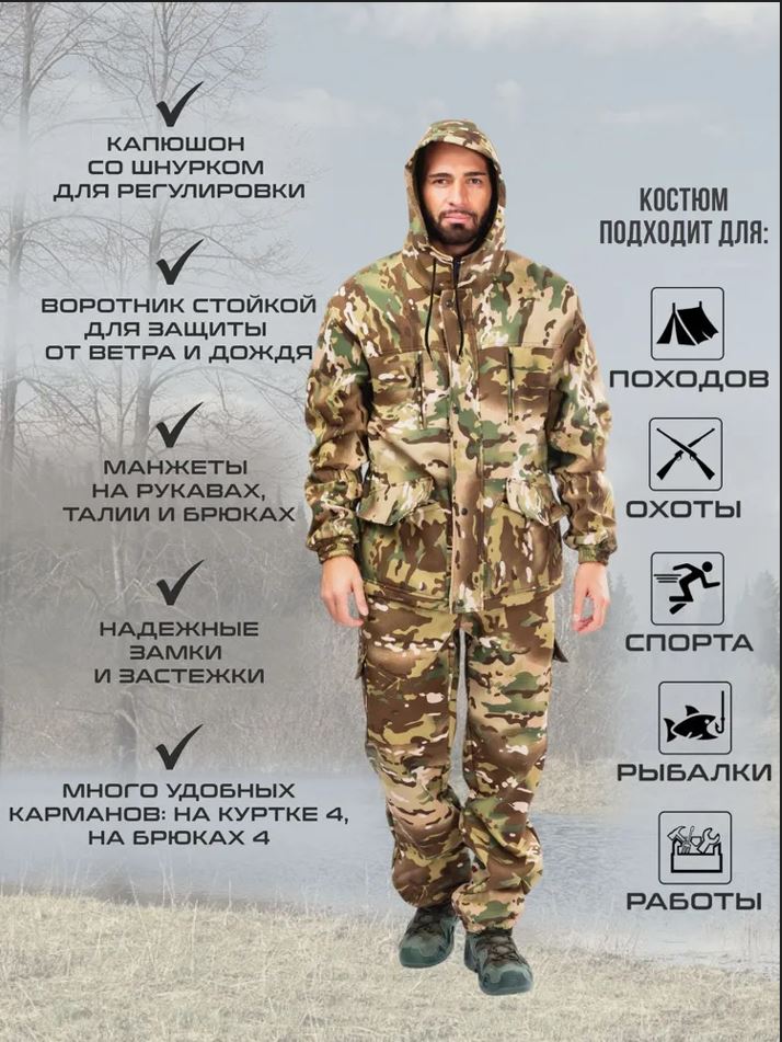 Костюм Горка 5 Демисезон Мультикам тактический камуфляжный для активного отдыха рыбалки и охоты