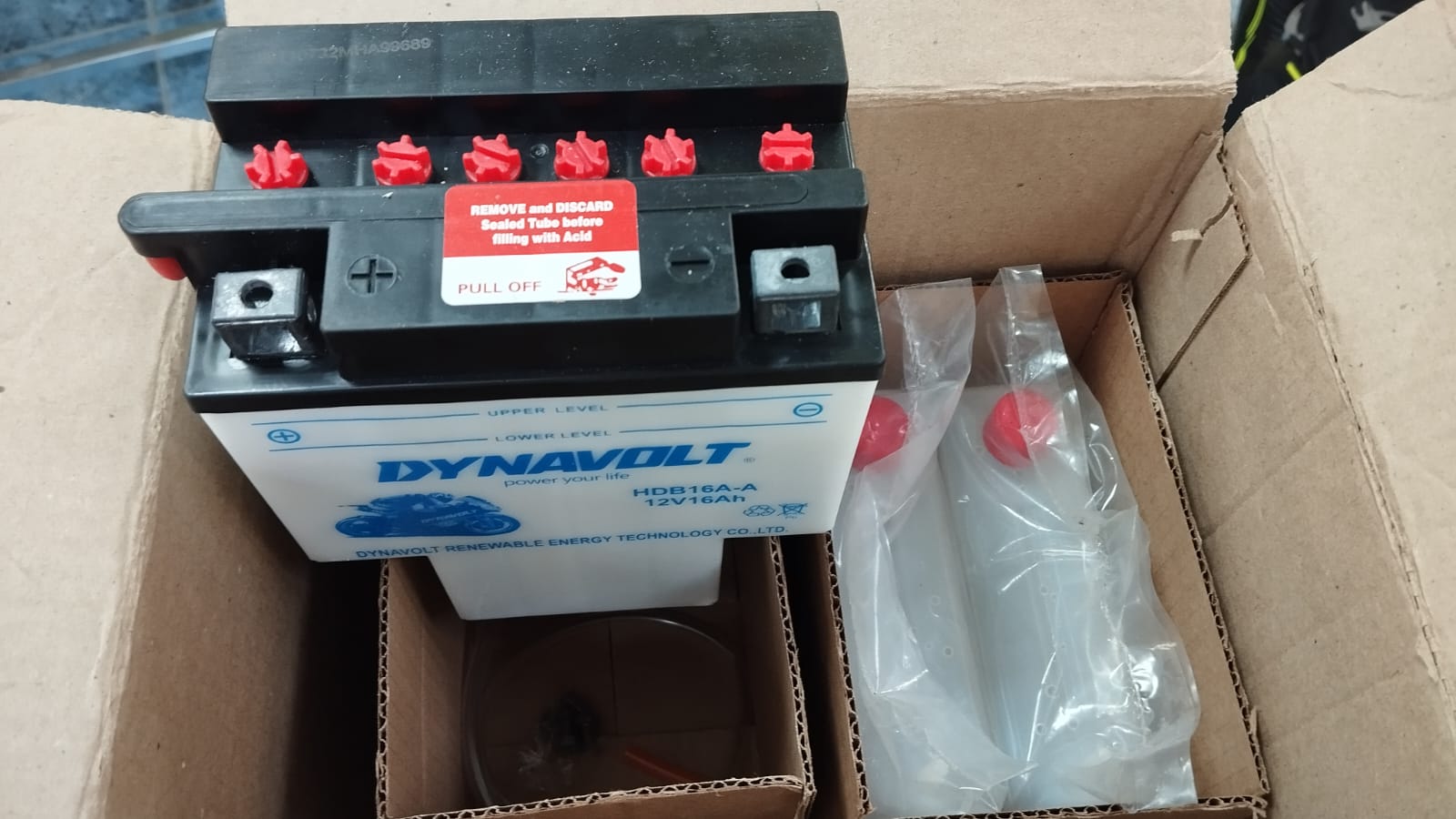 Аккумулятор Dynavolt HDB16A-A, 12V, DRY испорчена упаковка, с акб всё в порядке, комплект полный, упакован в другую коробку