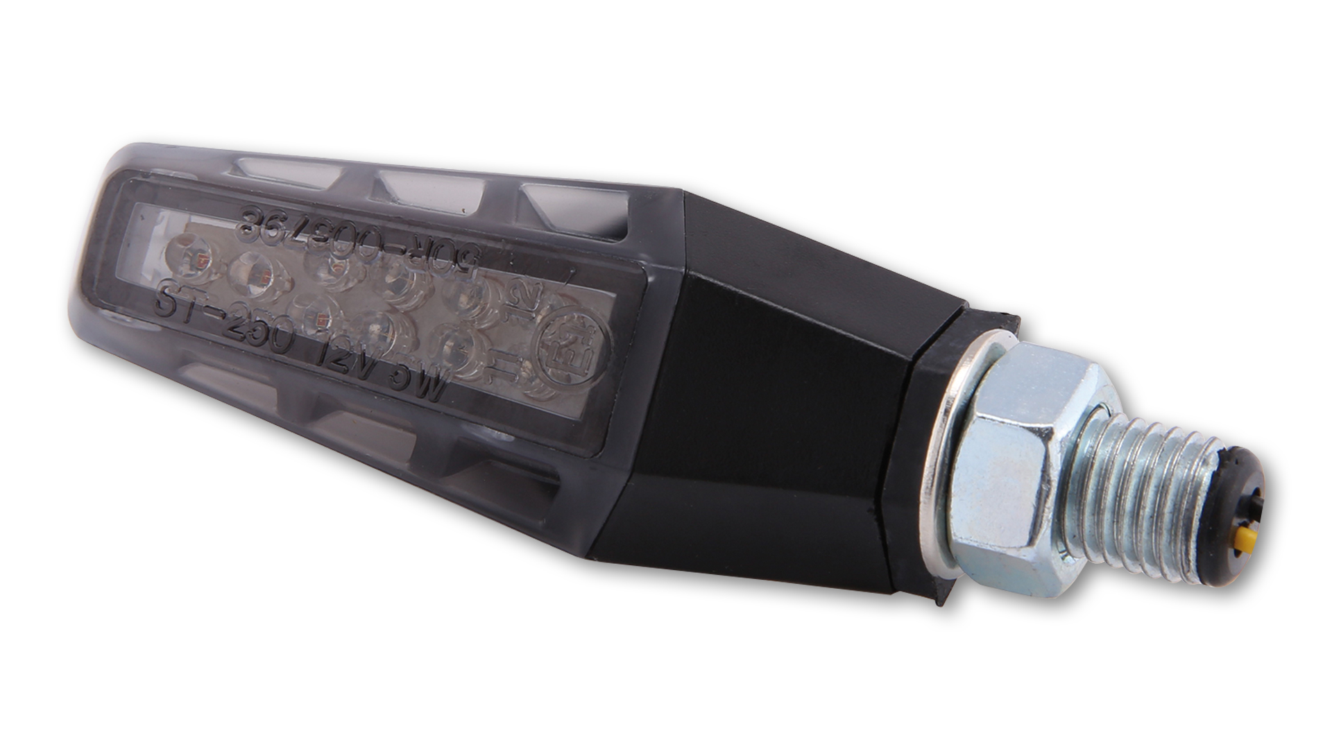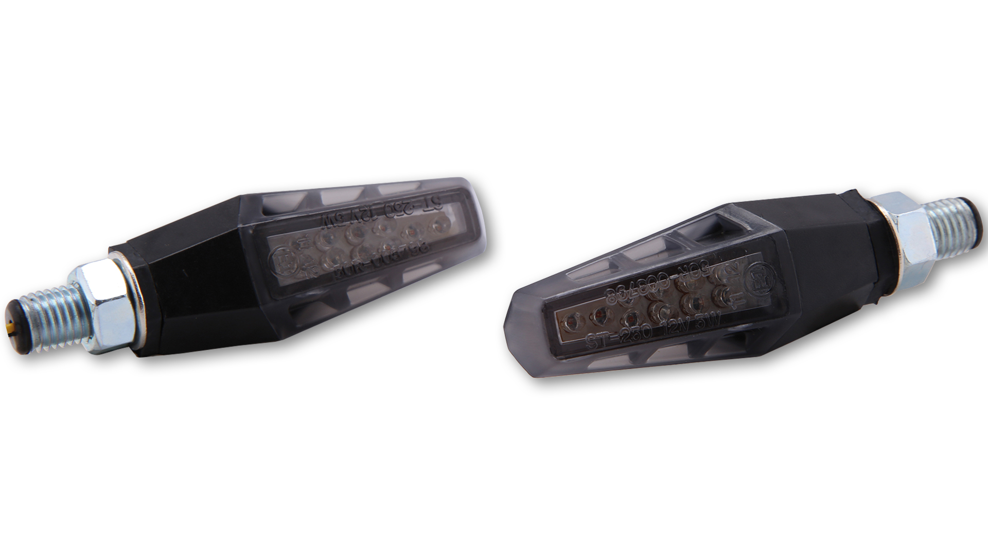 Современные поворотники GILL в прочном пластиковом корпусе черного цвета с тонированным стеклом.