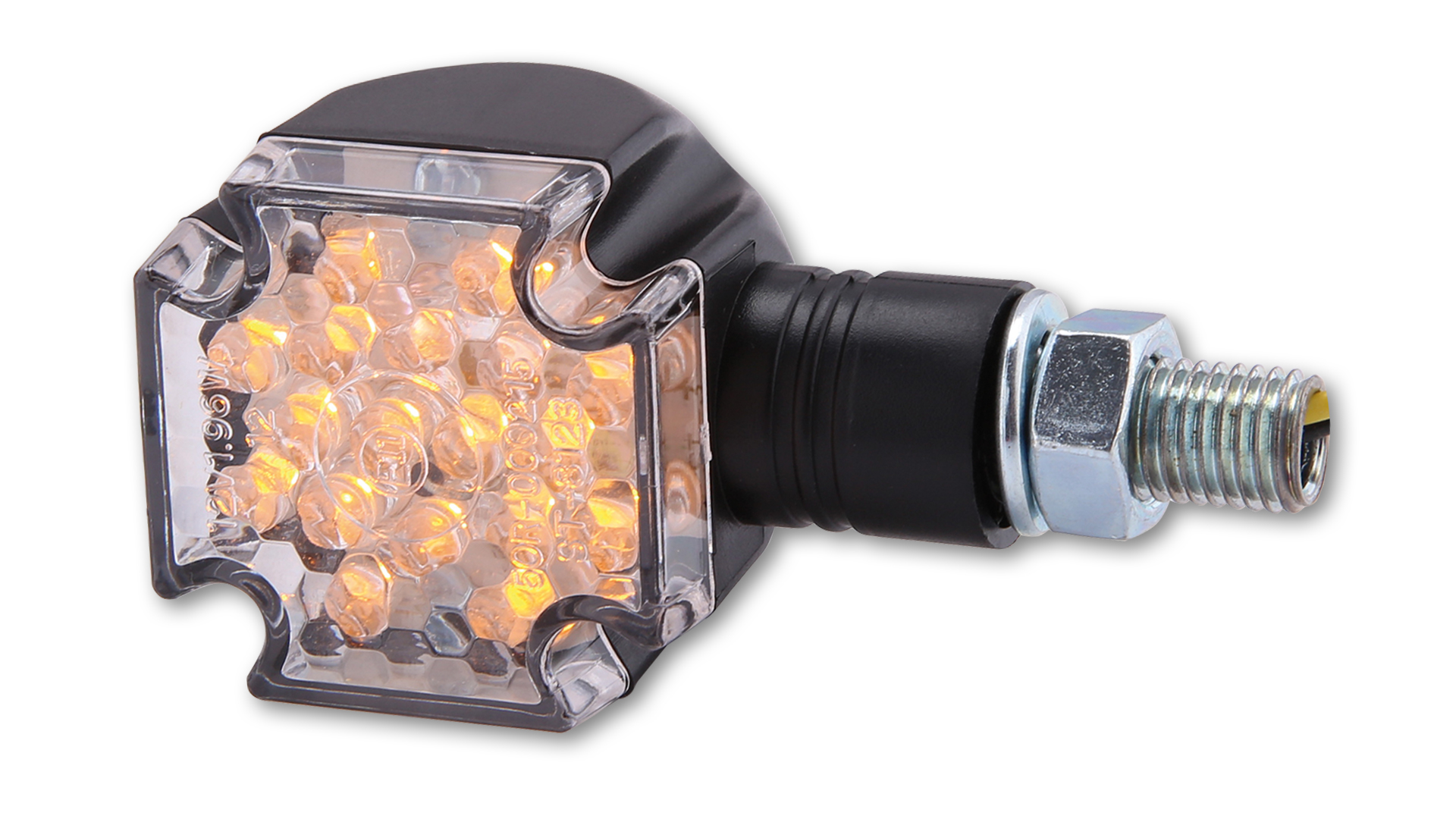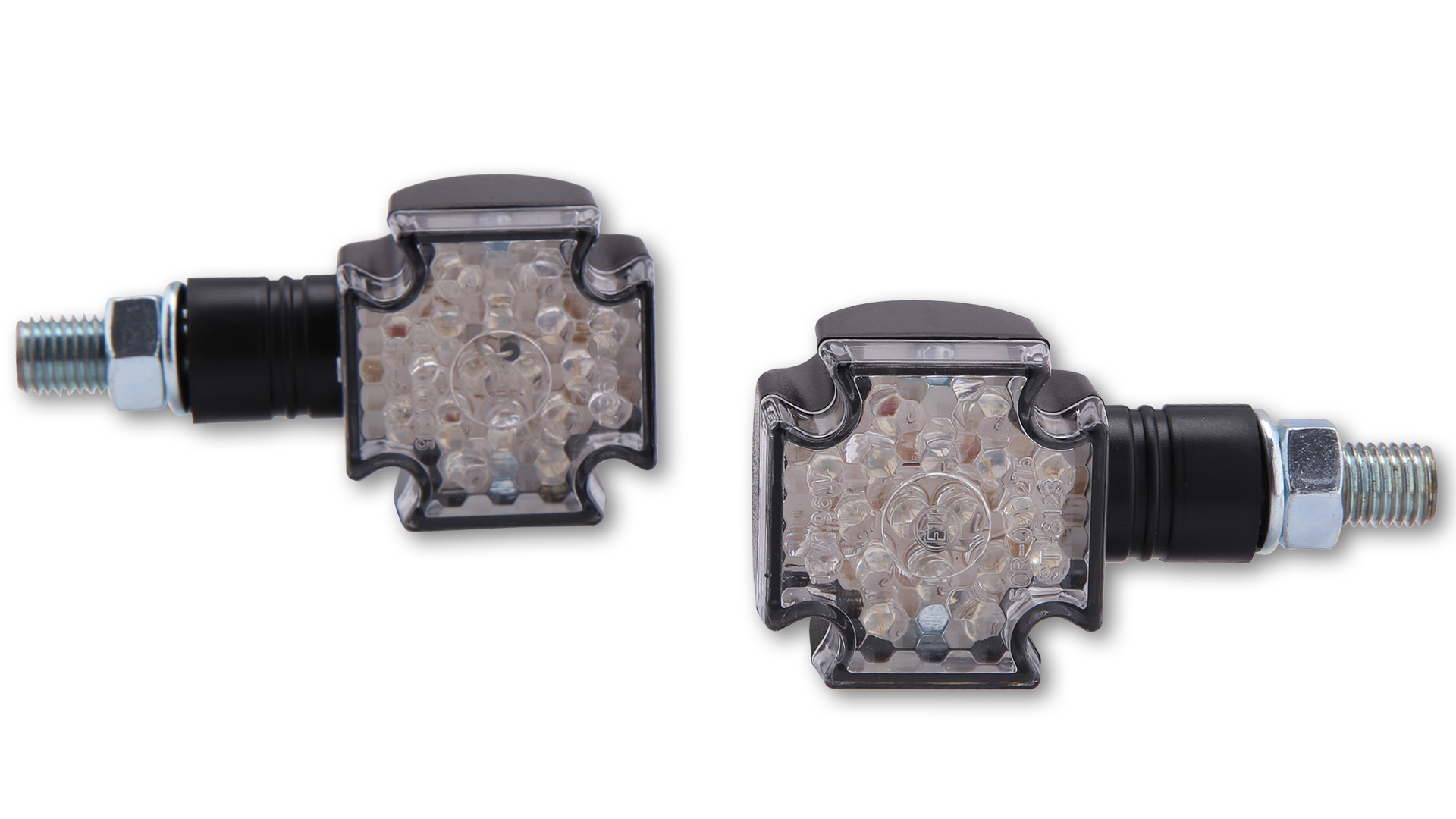 Современные мини поворотники CROSS в прочном пластиковом корпусе, с короткой ножкой и прозрачным стеклом.