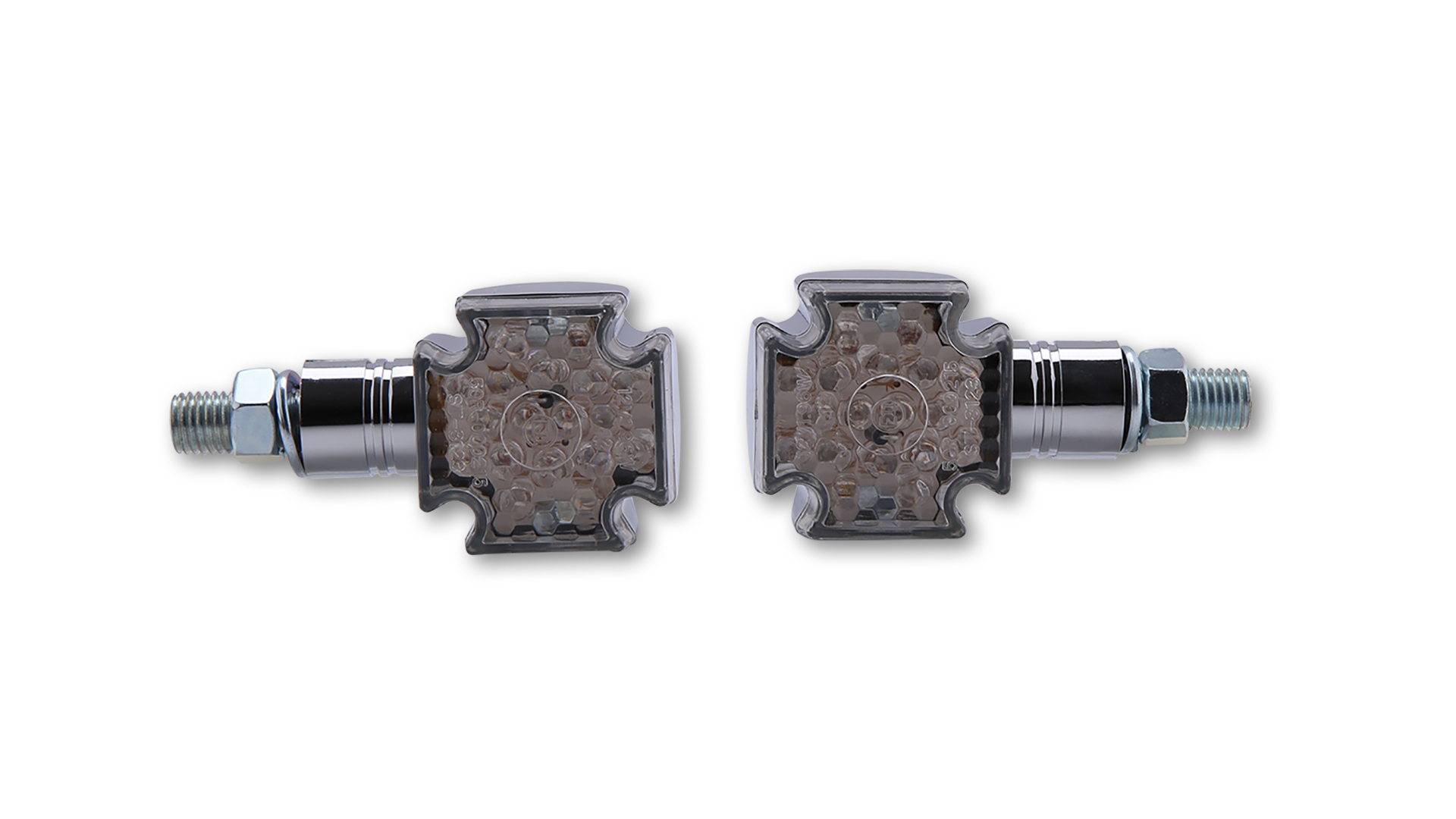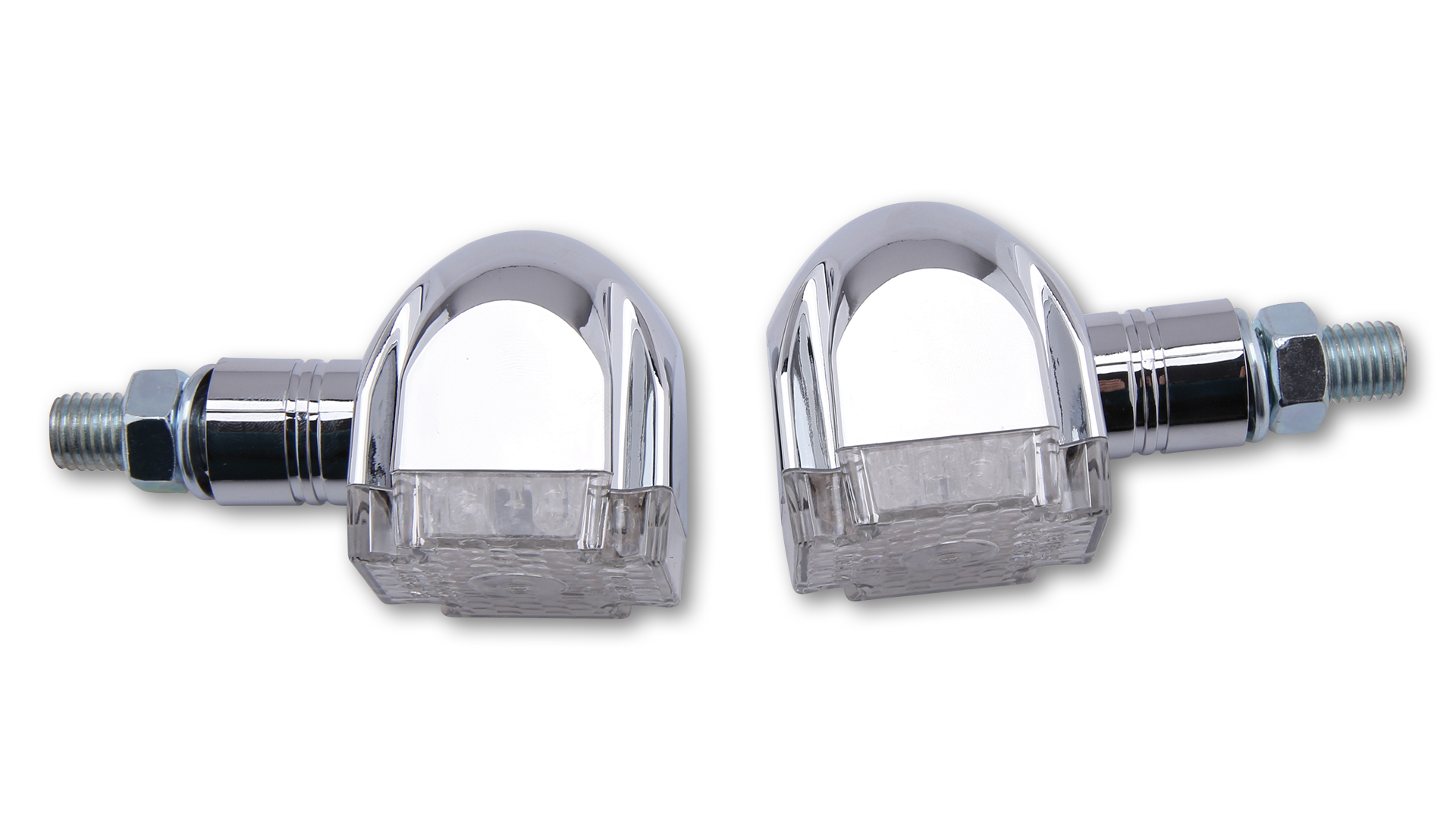 Современные поворотники в прочном пластиковом корпусе, с короткой ножкой и прозрачным стеклом.