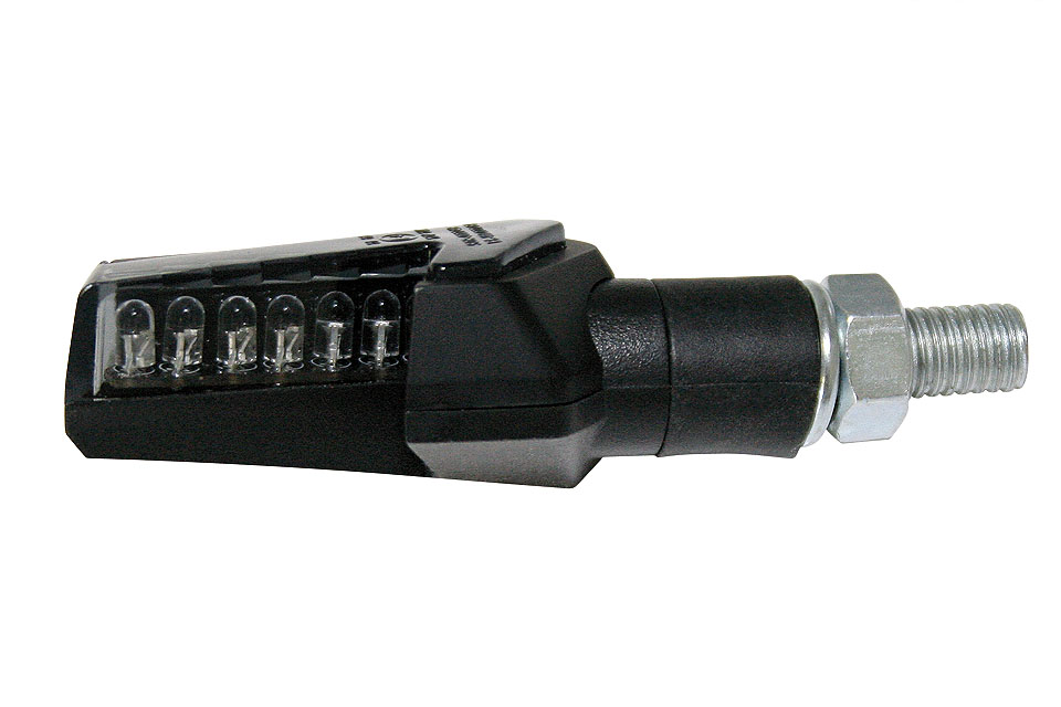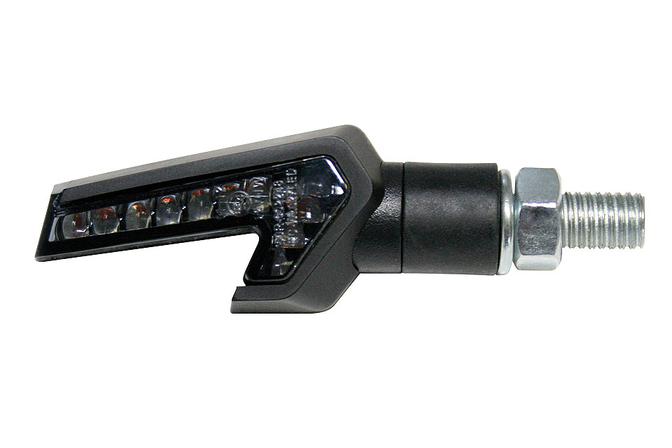 Универсальные поворотники STRADA, выполненные в ультрасовременном дизайне, имеют прочный пластиковый корпус черного цвета, резиновую ножку и тонированное стекло.