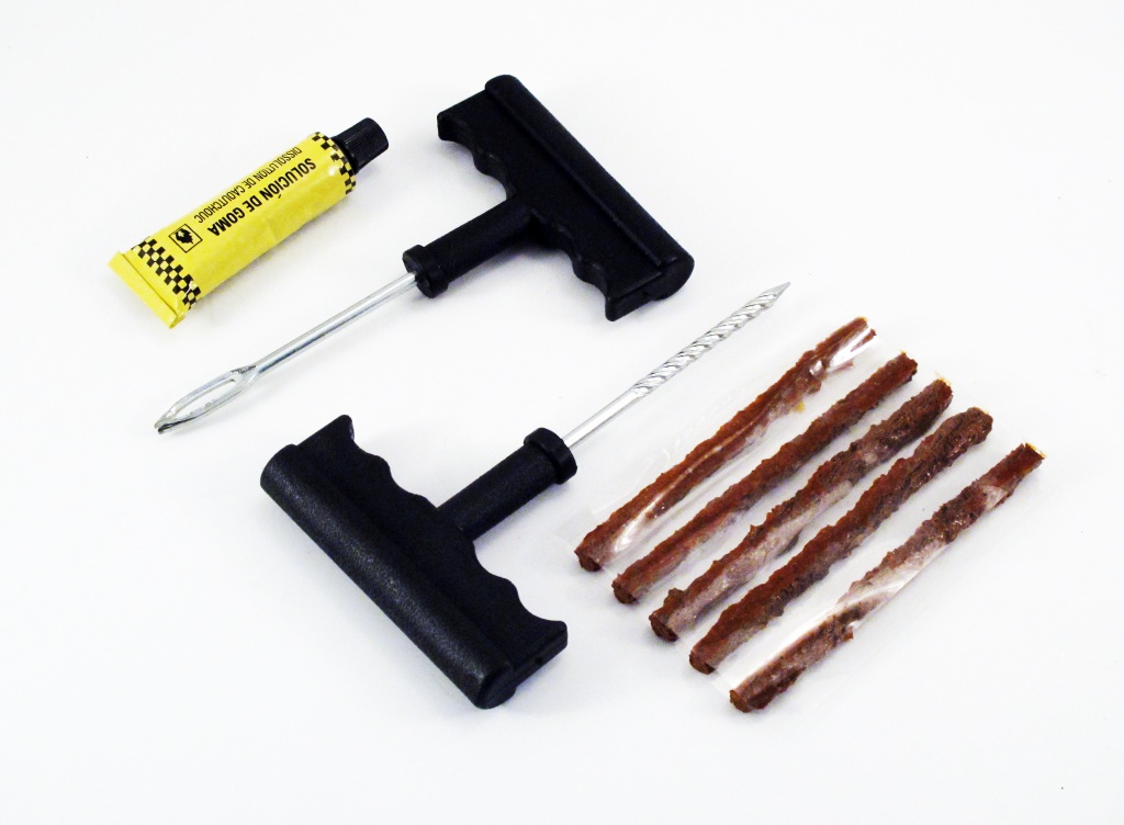 Ремонтный комплект для бескамерных шин позволяет не выкидывать проколотую шину, а заклеить отверстие. Не требуется ехать в мастерскую: ремонт можно провести самостоятельно в течении 10 минут (даже на обочине)